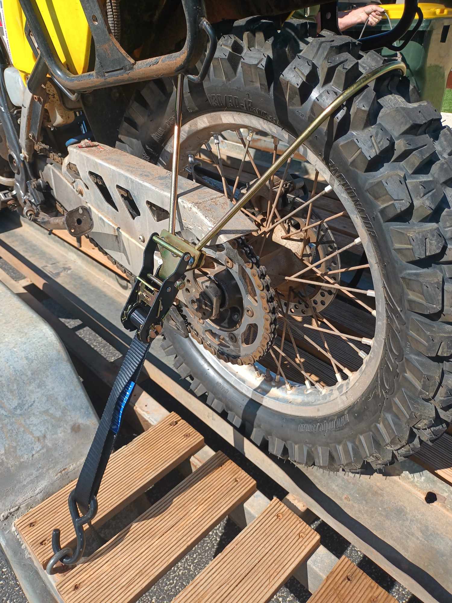 Running repairs to a broken foot peg after an off forced the bike onto the trailer